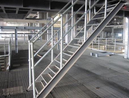 檢修平臺鋼格柵板是用扁鋼按照一定的間距和橫桿進行交叉排列,并且焊接成中間帶有方形格子的一種鋼鐵制品,檢修平臺鋼格柵板主要用來做鋼結(jié)構(gòu)平臺板,鋼梯的踏步板等.檢修平臺鋼格柵板一般采用碳鋼制作,外表熱鍍鋅,可以起到防止氧化的作用。檢修平臺鋼格柵板也可以采用不銹鋼制作。檢修平臺鋼格柵板具有通風,采光,散熱,防滑,防爆等性能。檢修平臺鋼格柵板應用范圍極其廣泛···